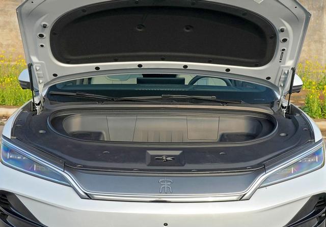 因为不需要布置发动机了,所以宋Ultra EV的车头位置提供了一个前备箱,在这里你可以放一些气味比较大的海鲜、生肉等等,以防车内“串味”,作为家用车,还是挺实用的。
