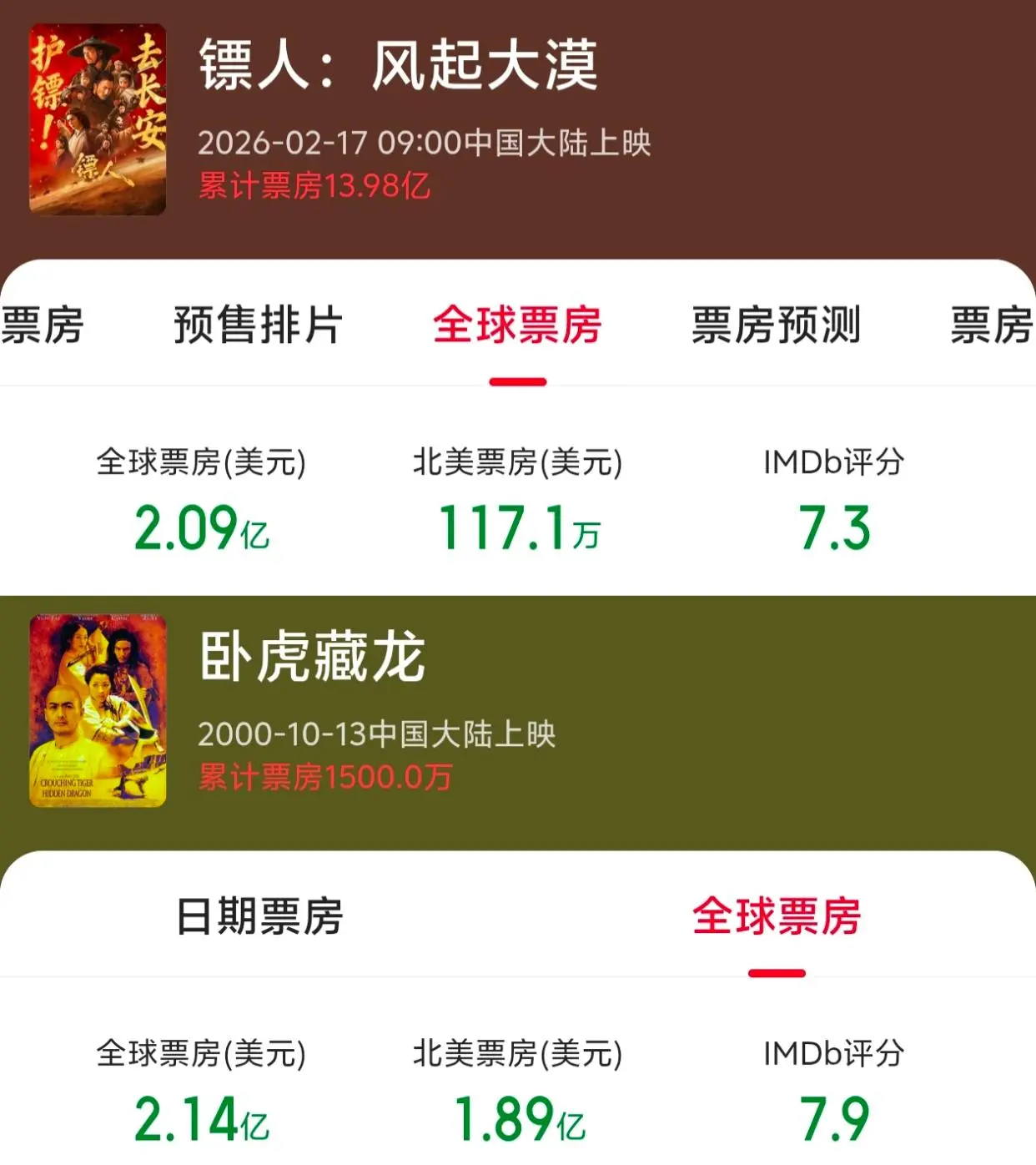 要知道,当今武侠片电影票房最高记录保持者《卧虎藏龙》也才2.14亿美元。